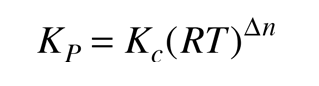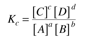 Chemical Equilibrium ConstantsChemical reactions may be envisioned in terms of reactants and products and written in the general form ![]() The reaction may be spontaneous,in which case the reactants would continue to react until they are exhausted with the end composition being nearly all product. In other cases a significant amount of energy must be supplied to get the reaction to go at all, so that the reactants, left to themselves, would remain in their current form. In intermediate cases, there may be some particular mixture which will exist at equilibrium. It is in those cases where the idea of an equilibrium constant is of greatest value. The equilibrium constant may be expressed in the form ![]() where [C] represents the molar concentration of C at equilibrium. For a given reaction, the concentrations at equilibrium would have to be determined experimentally. For gaseous reactants it is more convenient to express the equilibrium condition in terms of the partial pressures of the reactants and products. For this case the equilibrium constant is defined by ![]() where P denotes the partial pressure, usually in atmospheres. The two forms of the equilibrium constant are related by ![]() where Δn is the sum of the coefficients of the gaseous products in the chemical equation minus the sum of the coefficients of the gaseous reactants. In application, there are practical cases where some of the reactants and/or products do not appear in the equilibrium constant expression. When there are pure solids or pure liquids involve, the concentrations are treated as one for these substances, so they do not affect the equilibrium constant. The nature of the equilibrium constant allows us to make some qualitative judgments about the reaction. The general rules are: