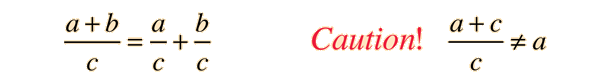 Algebraic CombinationsFactors with a common denominator can be expanded:![]() Fractions can be added by finding a common denominator: ![]() Products of fractions can be carried out directly: ![]() Quotients of fractions can be evaluated by inverting and multiplying: ![]() |