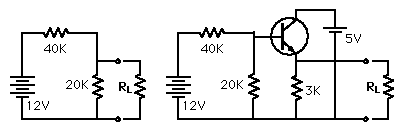 Emitter-Follower BufferAn emitter follower can serve as a buffer for a voltage source. The voltage divider at left is a poor voltage source because it is so strongly affected by the value of the load resistor. The same voltage divider with the transistor buffer at right will supply power to keep the voltage constant over its range of operation. ![]() The simple voltage divider will give a 4V output for an open circuit, but quickly drops when larger loads (smaller load resistors) are connected. The buffer helps to keep the output voltage more nearly constant. You can change the value of the load resistor below to explore the effect of the buffer. A 0.6 V diode drop was assumed for the transistor. The input impedance to the transistor buffer is assumed to be so high as to present essentially an open circuit. |