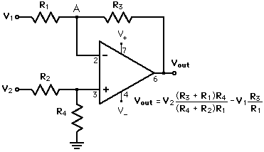 This amplifier uses both inverting and non-inverting inputs. If all resistors are equal it becomes a straight difference amplifier. If