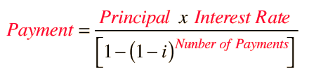 Calculation of InterestThe calculation of the interest on a loan is a useful application of algebra and exponents. For a monthly fractional interest rate i, principal P and number of payments n, the required payment may be calculated from ![]() ![]() Note: The interest rate calculation is not yet implemented. The equation for the interest is said to be "transcendental" in that it cannot be solved in closed form. An interative calculation is required. |