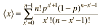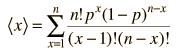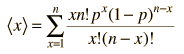 This seems a very simple expression for the mean of such a complicated function, but the result agrees with our intuition. If you throw a die, hoping to throw a "2", then the probability is 1/6. If you throw it 6 times, you would expect to get one throw with value "2". The mean or expected value for 6 throws is (1/6)(6) = 1. For such a simple expression, the proof that it is in fact the mean is rather involved. The following approach is after Appendix D of Rohlf's Modern Physics. From the definition of the mean using a distribution function, the binomial mean is ![]() The goal is to reduce this expression to just np. Since the first term in the sum is zero, since x=0, we can replace the sum with a sum starting from 1. ![]() Now cancel the common factor of x appearing in numerator and denominator. ![]() Since the summation index is a dummy variable, we make the change of variables x' = x - 1. ![]() Now factor out np. ![]() The terms in the summation above are just the binomial function for n-1 trials, and you are summing it over all values of x - so that sum must be just 1. The expression then reduces to the desired expression for the mean.