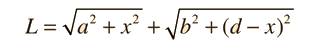 minimum time path is simply the minimum distance path. This may be found by setting the derivative