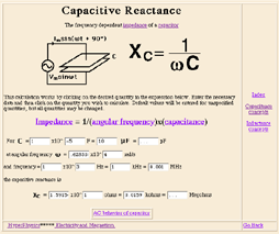 Another way to use the Javascript in web documents parallels the way I use a spreadsheet in instruction; to do tedious repetitive calculations needed for a design problem. Even the calculation of capacitive reactance is a bit tedious if you do it repetitively, so this calculation saves time. In this case the formula is active, and you can click on the item you wish to calculate.