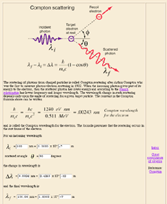 In a different kind of context like Compton scattering, the main intent is to convey the concepts, the history and the significance of the phenomena, but the numerical results are an essential part of that. The Javascript calculation performs the usual wavelength calculations, but also computes the energies and energy transfer.